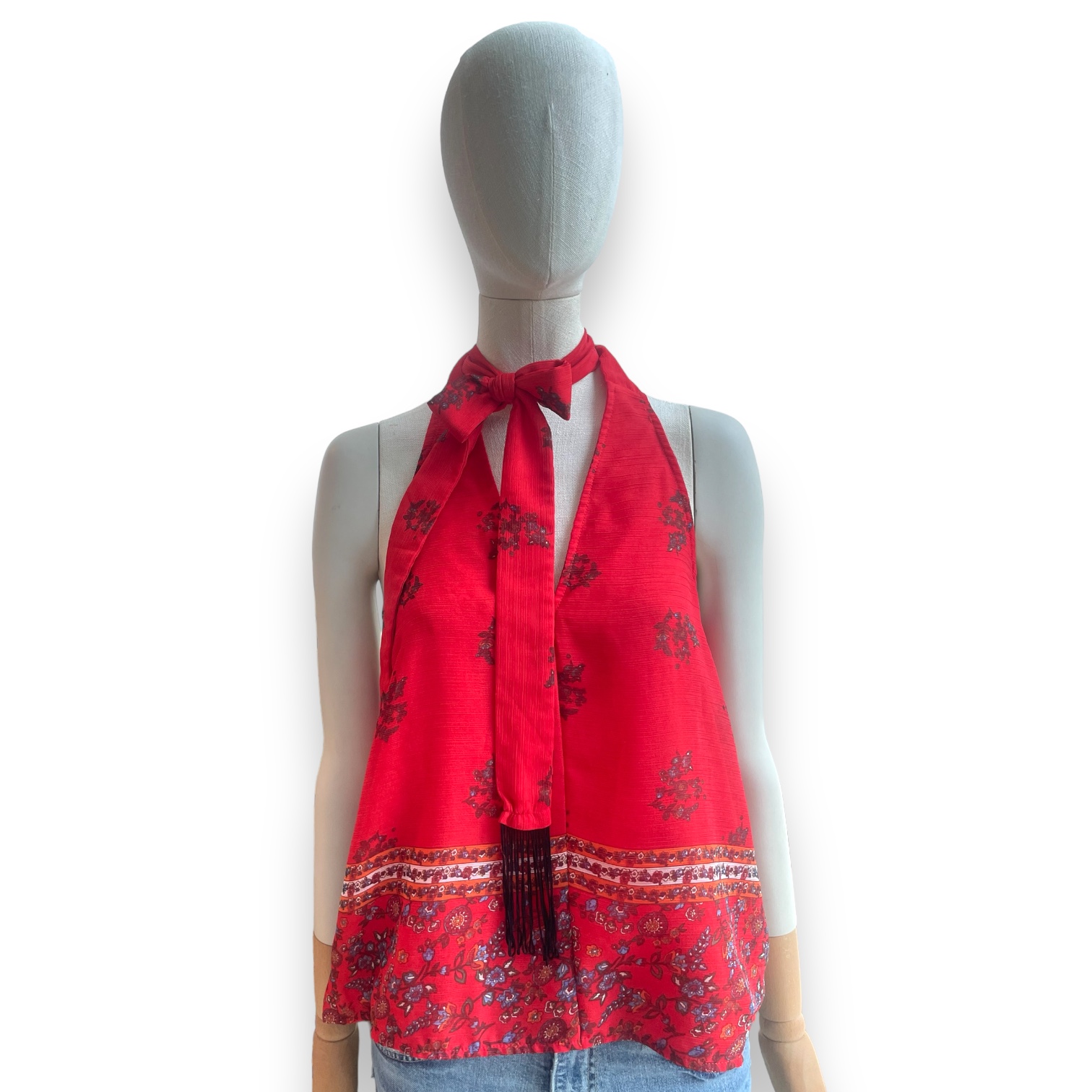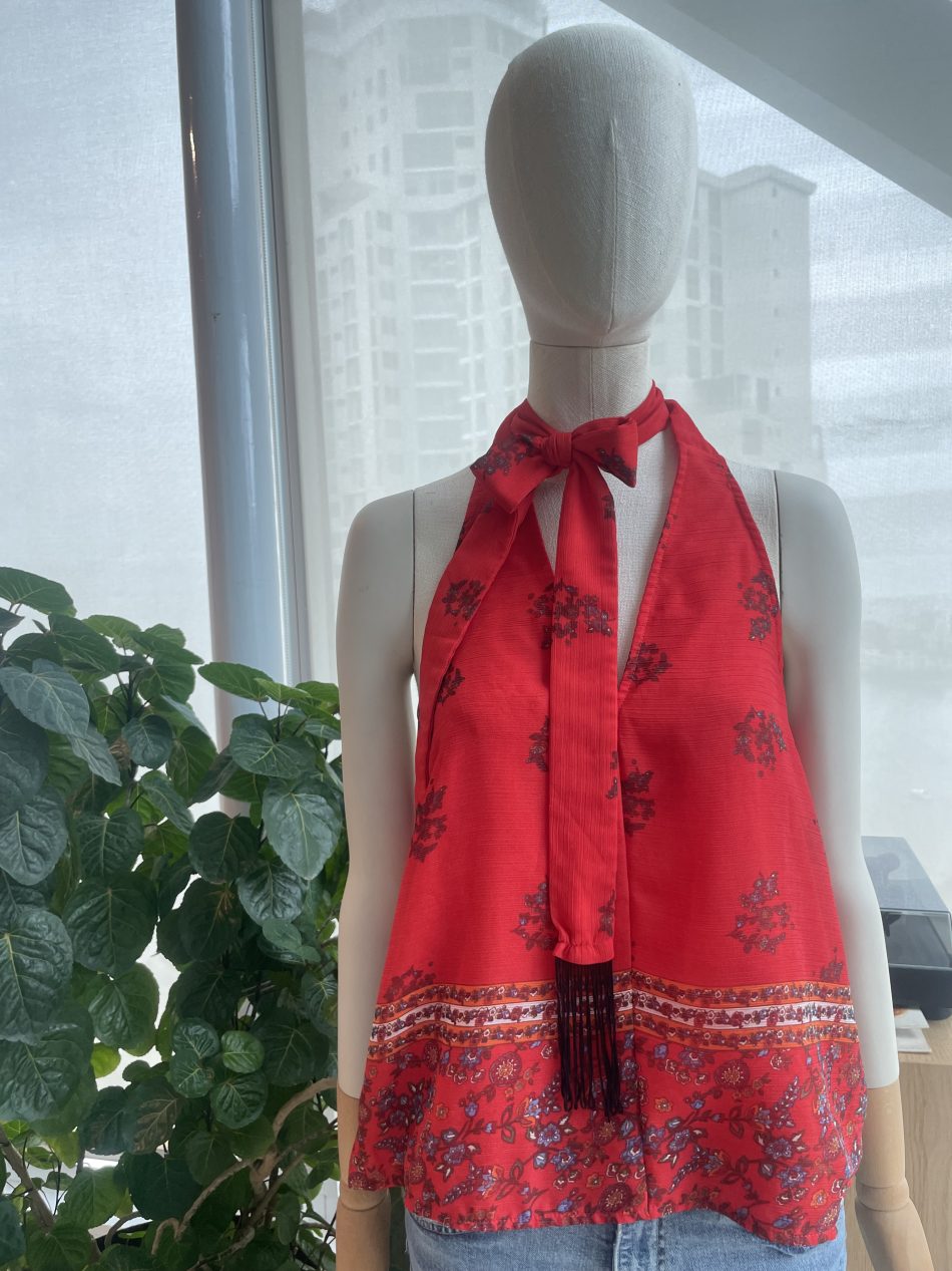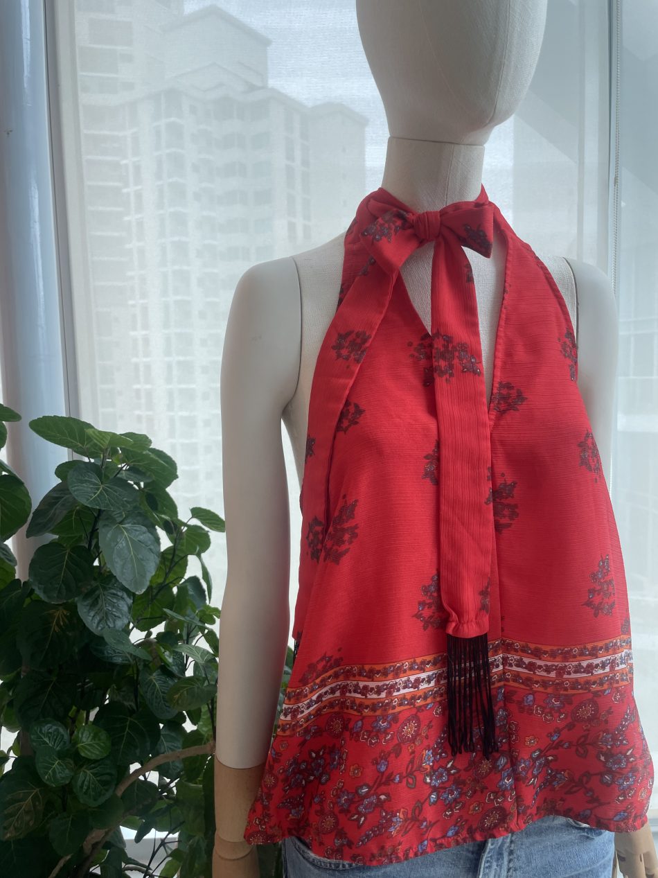 TOP HALTER ESPALDA DESCUBIERTA ROJO ESTAMPADO