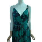 Vestido de noche hermoso Nuevo de Calvin Klein con estampado de flores negro con verde oscuro.