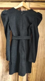 Vestido corto negro brillante con listón y abertura en la pierna | Marca: Topshop | Talla: US2