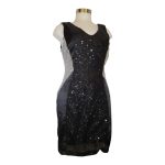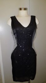 Vestido negro con blanco en lentejuelas, la parte trasera es de tela satinada con zipper; excelente para diversas ocasiones tipo: